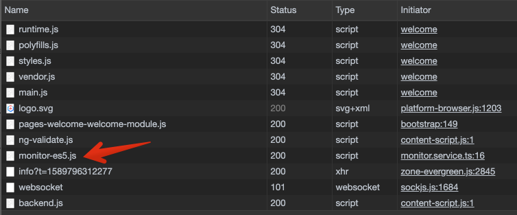 angular.json의 monitor 애플리케이션으 "scripts" 설정 내역 => scripts.js 파일에 설정한 *.umd.js 파일을 합친다.
