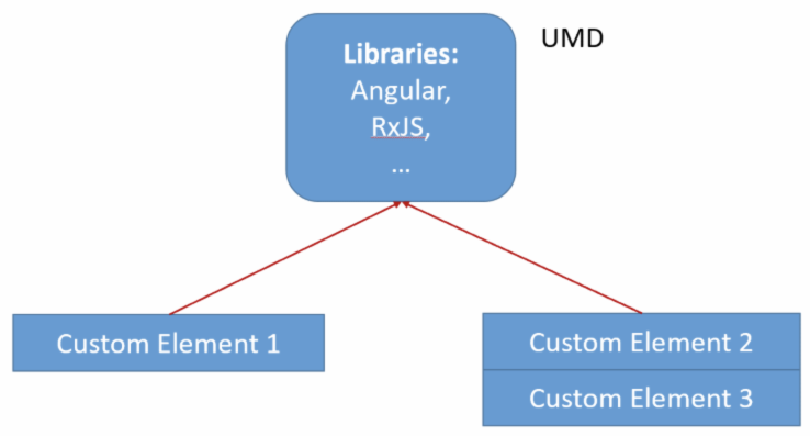 "node_modules/@angular/elements/bundles/elements.umd.js", 내용은 제거한다. elements.umd.js를 공통파일로 빼서 사용하는데 오류가 있다.