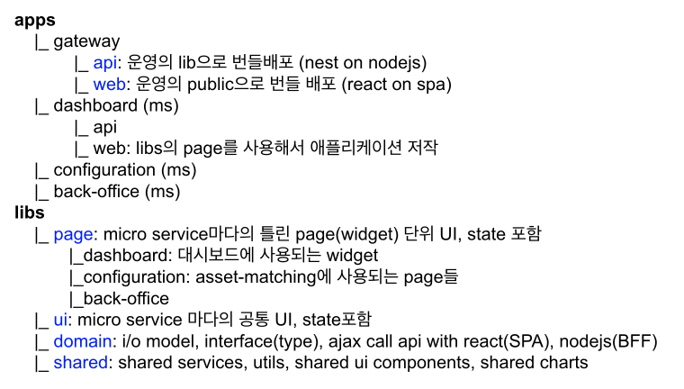 멀티 애플리케이션을 mono repo에서 개발할 수 있는 폴더 구조를 정의한다.