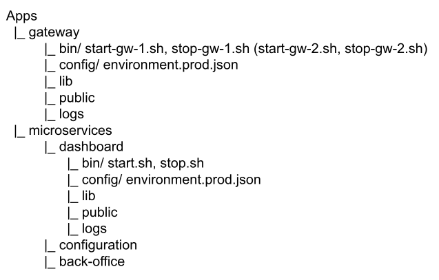 gateway와 micro services를 배포하는 폴더 구조를 정의한다.
