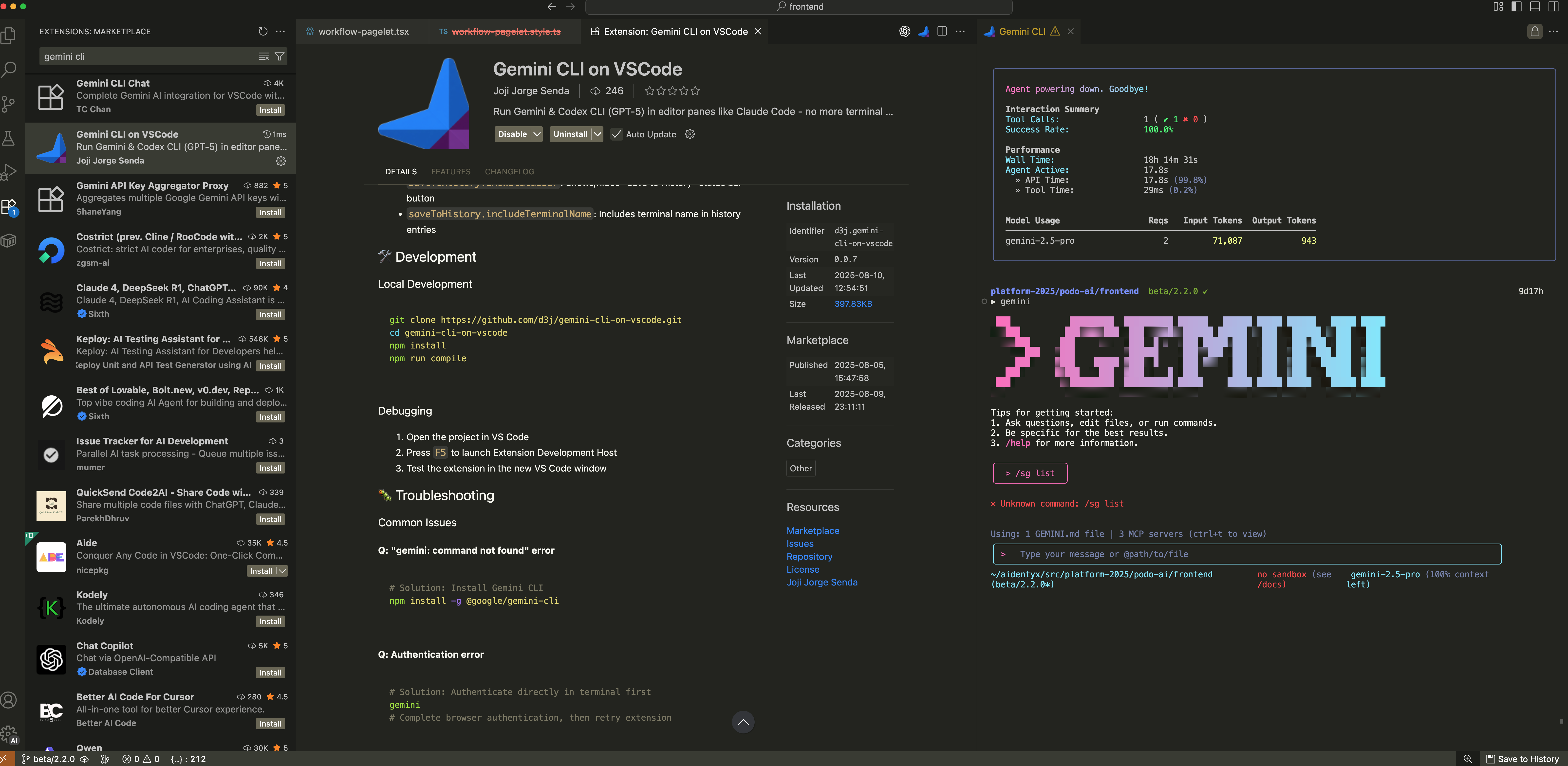 설치가 완료되면 계정의 .gemini 폴더에 commands/sg/*.md 파일과 *.md 파일들이 생성된다. gemini를 다시 실행한다.