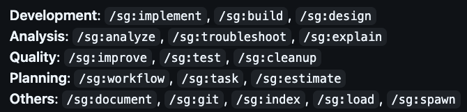 SuperClaude의 sc 커맨드이고, SuperGemini는 sg 커맨드를 사용한다.