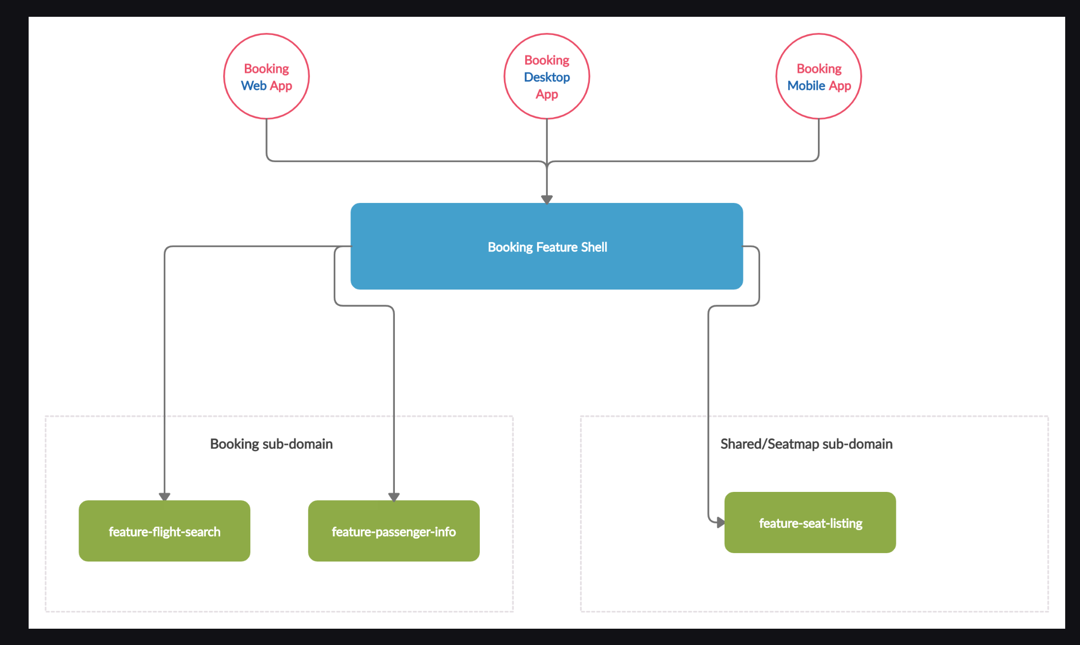 A domain-wise application is the composition of every application that has the same routes, behavior, and functionalities. In the example in Figure 1, the Booking Application is the union of the Booking Web Application, the Booking Desktop Application, and the Booking Mobile Application.