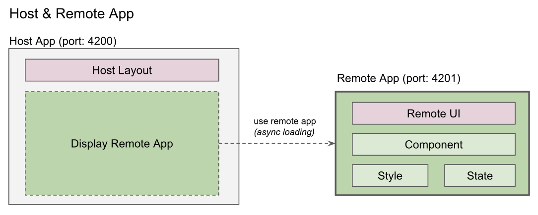 + 리모트 앱이 expose한 원격 모듈을 호스트 앱에서 비동기 로딩해서 사용한다.