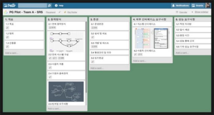 SRS는 Software Requirements Specification 약어로 서비스를 만드는 내역의 처음과 끝이 담겨져 있다. "SRS의 중요성"이라는 블로그에서 SRS의 중요성을 인지하고, 몇번의 서비스을 하면서 SRS를 써오고 있다. 여기서 오해하지 말아야 할것은 SRS은 양식이나 포멧이 아니다. 즉, 한장으로 표현될 수도 있고, 몇장으로 정해진 양식에 따라서 써질 수도 있다. 처음은 문서-doc-파일에 정의해 보았으나 내용의 확인 및 업데이트가 불편하여 Trello에 SRS를 정의 하고 있다.