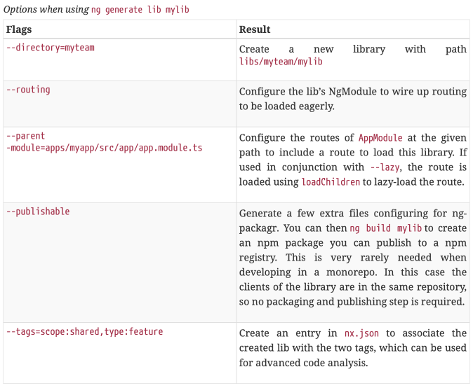 - --publishable: 특별히 npm registry에 publish 할 수 있는 library를 만들고 싶을 때 사용한다. ng-packagr 기반이다.