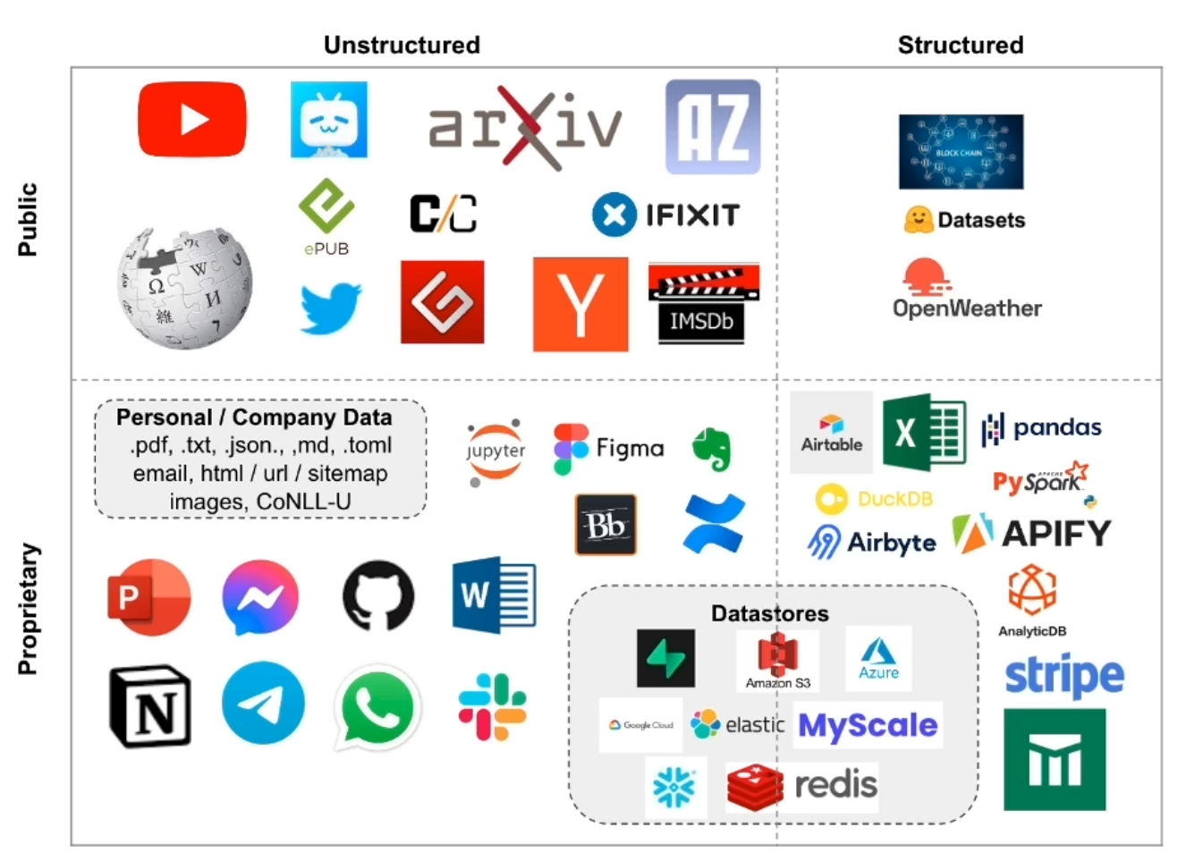 - 파일: text, csv, pdf, markdown, docx, excel, json, ...