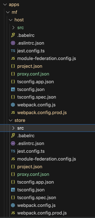 - project.json 에 implicitDependencies 설정하면 mf-host와 mf-store는 하나의 애플리케이션으로 간주된다. (참조)